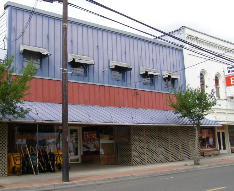 9. Hermann Block building (1st and Spruce). Portions of this large building were built in 1892 by Binger Hermann, Sol Wise and Edward Bender. It was originally 3 stories tall and had an Opera Hall on the second floor. The third floor had the first Masonic temple in Myrtle Point and stores and the Post office were located on the lowest level.